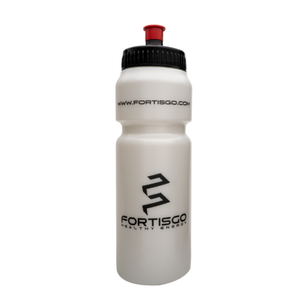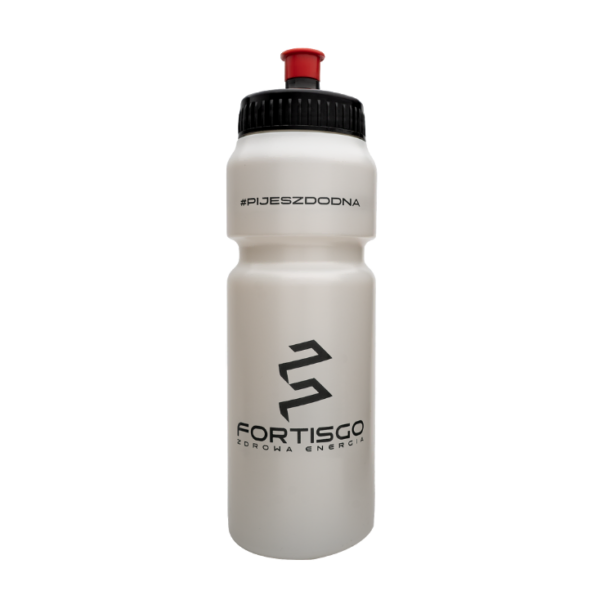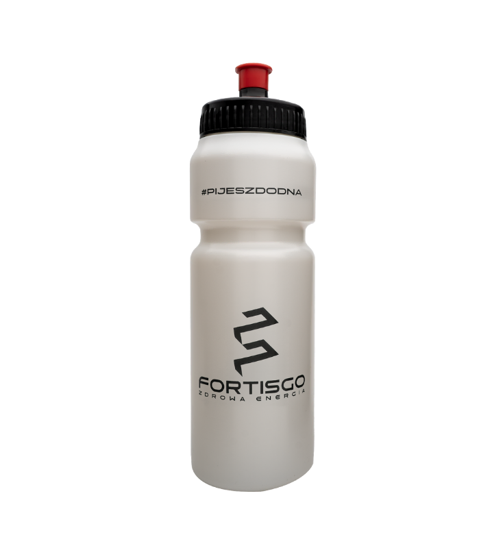 Biała, matowa powierzchnia z wyrazistym brandingiem FortisGO oraz hasłem #PIJESZDODNA to jasny sygnał: dbasz o nawodnienie i robisz to świadomie. Ergonomiczny kształt zapewnia pewny chwyt, a sportowy ustnik umożliwia szybkie picie w ruchu – na siłowni, w biegu, w aucie czy w biurze.